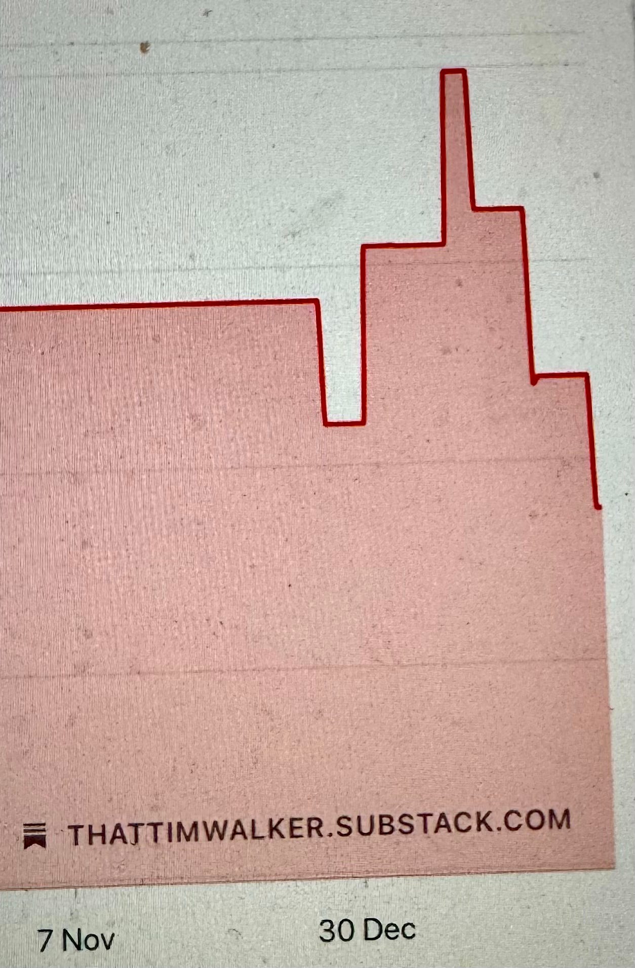 A Substack first: I rejoice at my falling ratings. It means I'm simply not bonkers enough for this new media age